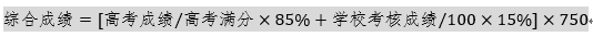 综合成绩(总分750.00分,精确至小数点后两位)由高考成绩和学校考核成绩两部分组成,折算办法如下: