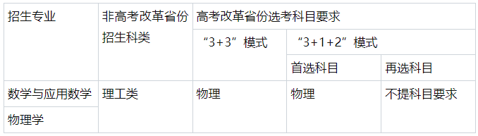 我校强基计划招生专业为数学与应用数学、物理学,招生科类及选考科目要求见下表。